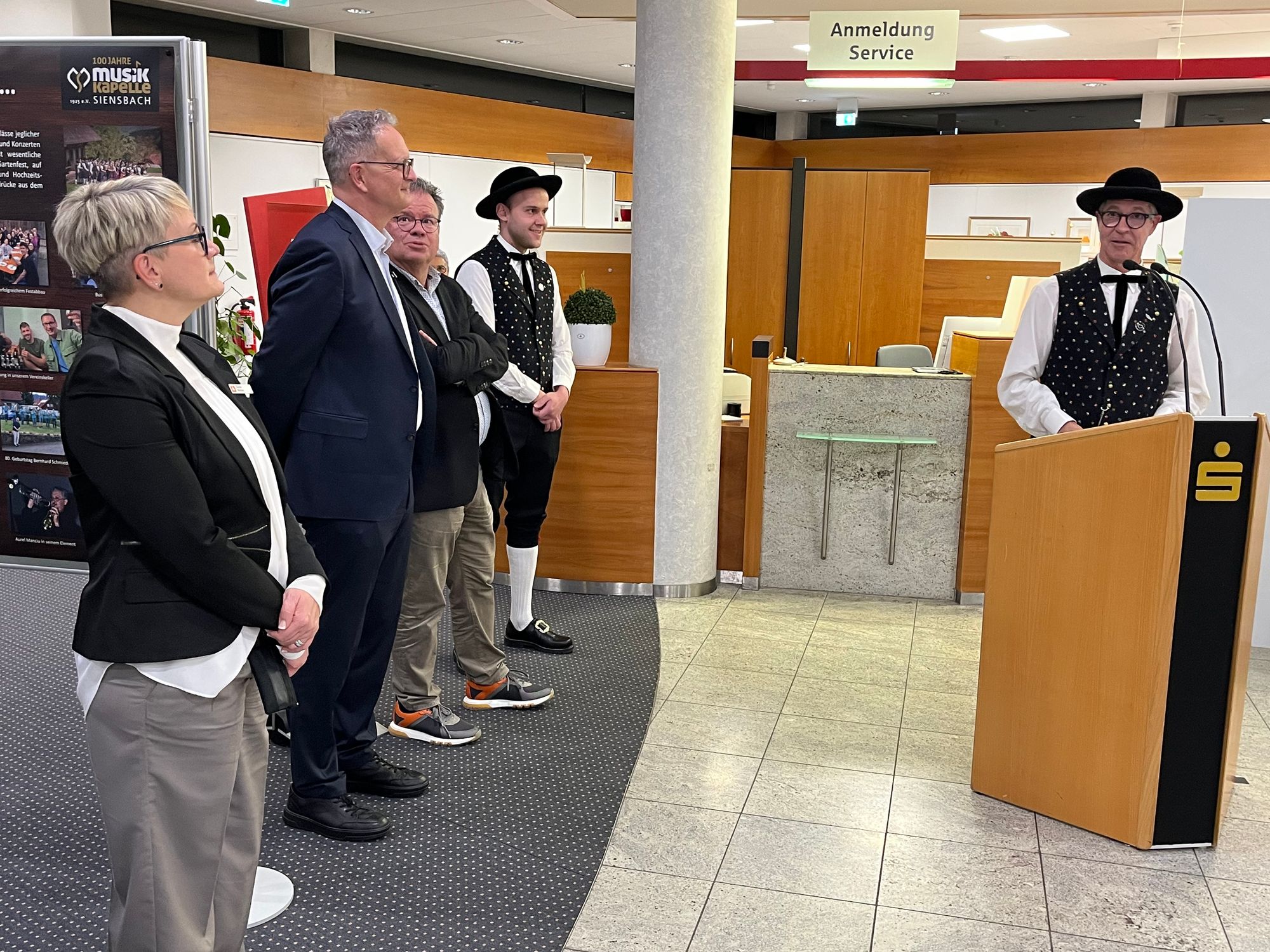 Am Freitag, war ich bei der Eröffnung der Ausstellung über 100 Jahre Musikkapelle Siensbach. Die Ausstellung wurde durch Matthias Hirschbolz, stellvertretendes Vorstandsmitglied u. Regionaldirektor Nördlicher Breisgau/Elztal eröffnet. Er wies darauf hin, dass vielerorts im Elztal vor rund hundert Jahren, so auch in Siensbach der Wunsch entstand eine eigene Kapelle ins Leben zu rufen. Ziel der Gründung war natürlich gemeinsames musizieren, aber auch das kirchliche wie weltliche Feste in Siensbach feierlich umrahmt werden konnten. Aus den 27 Musikerinnen und Musikern des Gründungsjahres ist im Laufe eines Jahrhunderts eine stolze Musikkapelle mit heute 54 aktiven Mitgliedern gewachsen. Sie vereint Generationen und verbindet Menschen aller Altersstufen in ihrer Leidenschaft für die Musik. Bernd Zickgraf, stellvertretender Oberbürgermeister der Stadt Waldkirch überbrachte die Grüße der Stadt und des Stadtrates. Der Vorsitzende der Musikkapelle Bernward Lindinger bedankte sich für die Möglichkeit die Ausstellung hier in der Sparkasse zu zeigen und ging nochmal auf einige besondere Ereignisse des Jubiläumsjahres ein. Die Ausstellung ist noch bis zum 10. Dezember 2025 zu besichtigen.